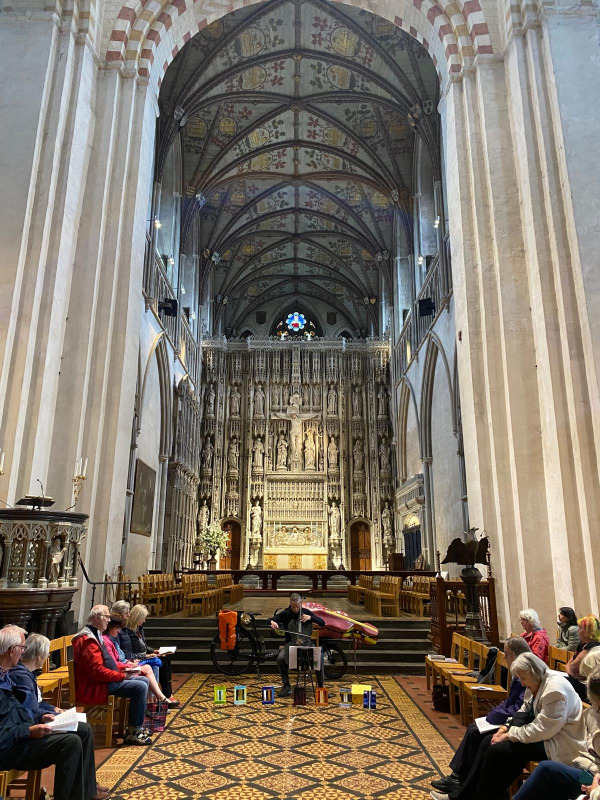 The power of your music and cycling made this moment a time I very much enjoyed and was easily surrendered to it all. Well done Kenneth & Libre, truly moving. I was glad to see your bike inside the cathedral as well as the artwork that travels with you. Have a safe journey.
